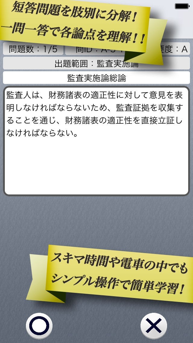 厳選された300問が搭載されており、正確に正誤判定できる実力をつけよう