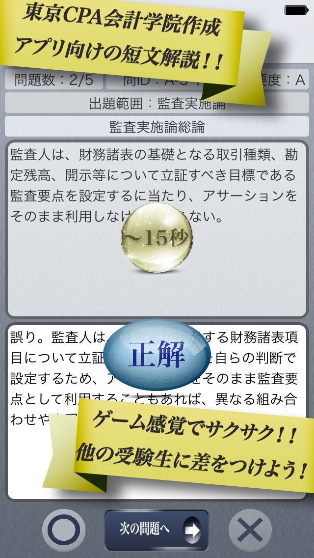 早解き!会計士短答 監査論 東京CPA会計学院監修(厳選300肢)のスクリーンショット