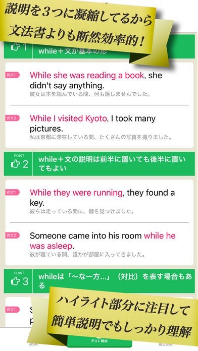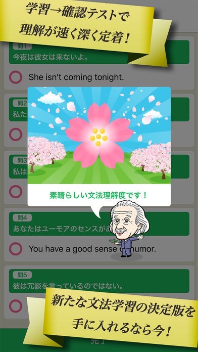 TOEIC満点講師長田いづみ氏と大学講師中村信子氏が「重い参考書ではなく、もっと気軽にゲーム感覚で楽しめて、全範囲をカバーできる英語学習アプリを」という思いて開発されたものです。なので、プロの視点から見た、より効率的な英文法勉強法で進めることができます。