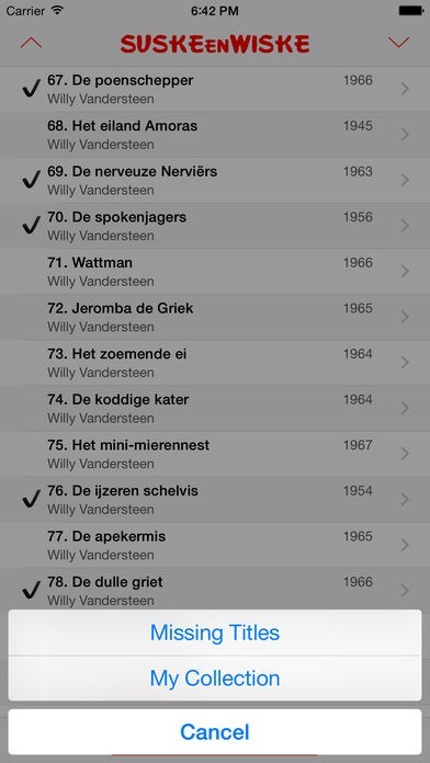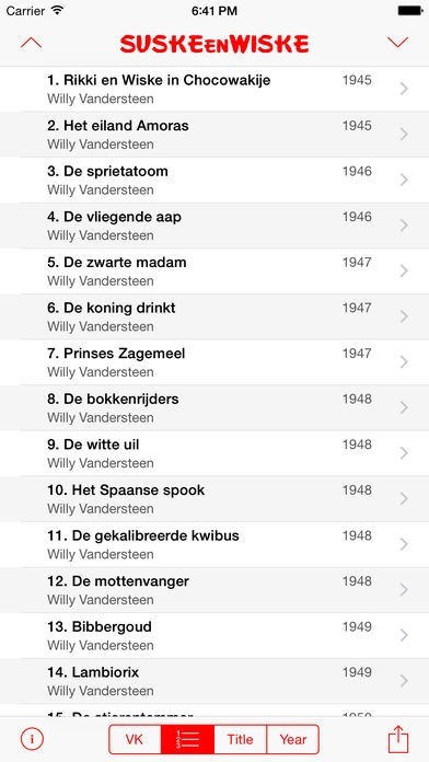 App Storeより引用Deze aardige app stelt je in staat om je verzameling van Suske en Wiske albums te archiveren en te bekijken. Van elk album kan je aangeven of je het album al bezit en je kan per album een aantekening toevoegen.