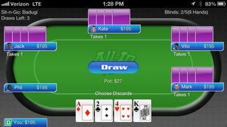 円テーブルを囲んで大人数でポーカーゲームを楽しむことが出来ます。これほど大人数でポーカーゲームをプレイできるカジノゲームは他にはあまりないので、本アプリケーション特有の機能です。