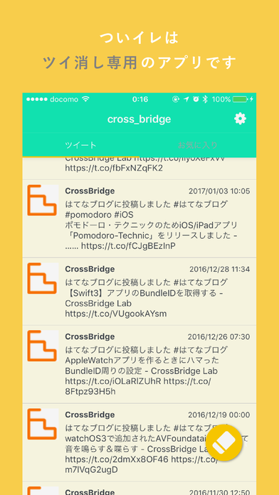 消すことのできるツイートは自分のアカウントからツイートしたものに限定されています。アプリにログインすることができるためプライバシー面での安全が担保されているのです。