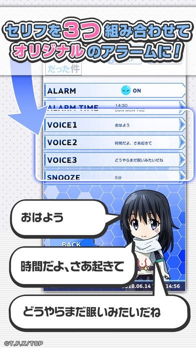 転スラアラーム 〜シズ編〜は70種類のボイスから3つ組み合わせてアラームにできるもので、好きなボイスの組み合わせを見つけるまでいろいろ試してみるのがおすすめの楽しみ方です。