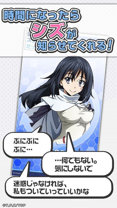 人気アニメ「転生したらスライムだった件」に登場するシズのボイスでアラームを聞くことができるツールです。彼女の元気溢れるボイスで朝起きたりすることができるようになります。
