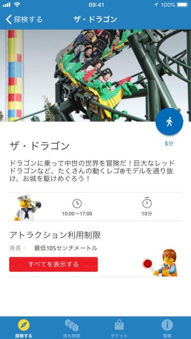 ショースケジュールのアラーム通知機能や、アトラクションの待ち時間もリアルタイムに確認できるので、時間を無駄にすることなく、レゴランドを楽しく回ることができます。