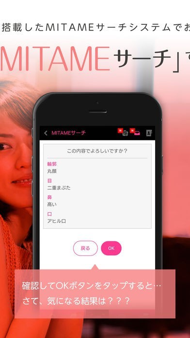 顔の全体的な雰囲気ではなく目は二重であったり、鼻筋が整っていたりとパーツ一つ一つについて条件を設定することができます。設定にこだわればより理想の顔に出会える可能性が上がります。