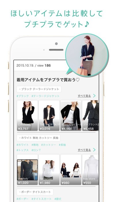 気に入ったコーデがあれば、似ているアイテムをそのままチェック。提携している通販サイトからたくさんの類似アイテムを表示しているから、デザインや値段の合うものを選んですぐに買うことができます。
