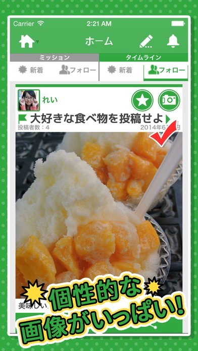 皆で盛り上がれる投稿機能を用意。お題に沿って写真をどんどん投稿しよう!