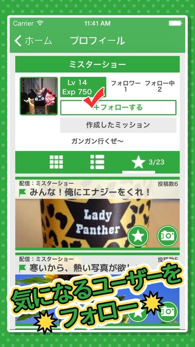 フォトちゃれは、様々なミッションに参加して写真を投稿できるアプリです。ジャンルは9種類あり、好きなものや興味を持ったものがあれば、どんどんチャレンジすることができます。ミッションにあった写真を撮影すると、プロフィールが充実して来ます。タイムラインでは、他の人が投稿した作品が見れ、仕事の休憩時間など面白い作品を見ると笑顔になれます。 ミッションを自分で作ることも可能です。ペンの形のアイコンから作成ページに移れます。気になることがあれば検索して画像を探すよりも、ミッションとしてお題を作って、みんなから写真を投稿してもらうという使い方もあります。