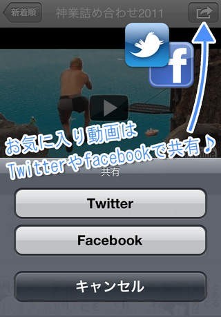 TwitterやFacebookと連携し、お気に入り動画を共有できます