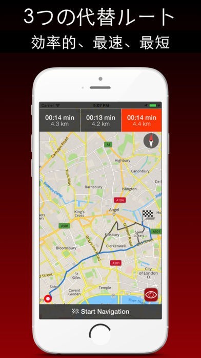 - 距離の表示と到着時間と歩行者、自転車や車の場合は常に最短で安全なルート。