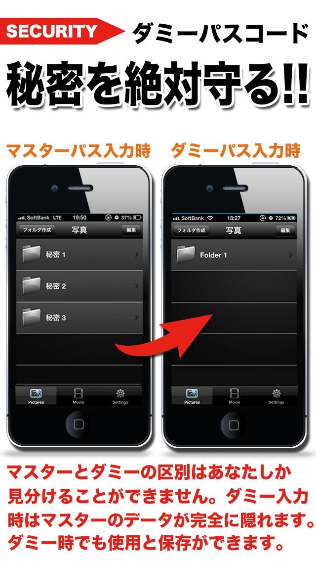 秘密の画像はダミーフォルダ機能で保護!パスコードロック機能でプライバシーをしっかり守る!
