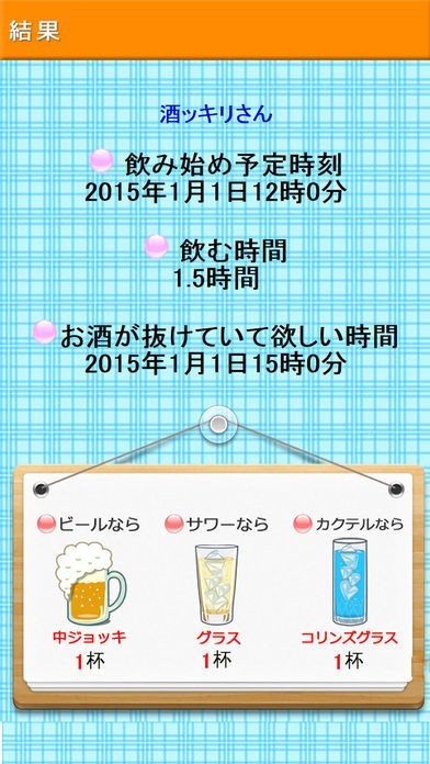 お酒が抜けるまでに必要な時間、抜ける時刻を調べられます!