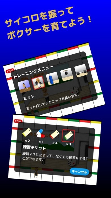 App Storeより引用ボクサー物語は日本のボクシングジムを舞台にしたスゴロク型ボクサー育成ゲームです。