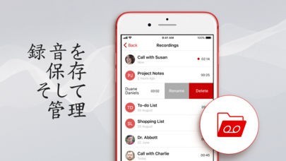 話している内容や通話中のボイスを録音出来るようになっています。リスト形式で音声ファイルを細かく管理する事が可能なので、特定のデータを探したい時に役立つでしょう。