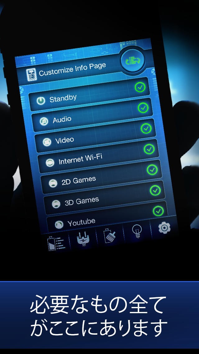 App Storeより引用バッテリーパワーXはiデバイスのバッテリーの寿命を維持、増加させます。バッテリーをパワーア『『う先進的なアルゴリズムを用いることで電池の消費量を最小限に抑えます。このアプリケーションはあなたのデバイスの使われ方を調整してバッテリーの寿命を延ばします。