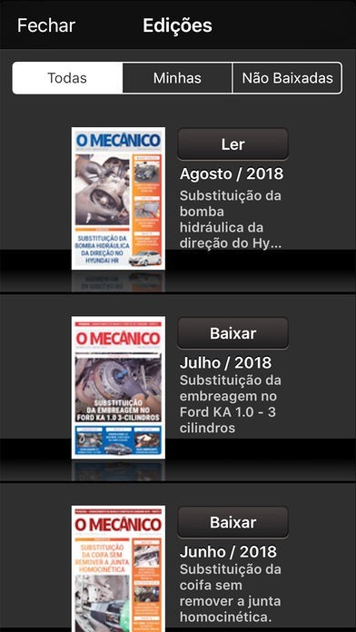 App Storeより引用A Revista O Mecânico é uma publicação técnica dirigida para o profissional da reparação veicular, o mecânico, e outros profissionais envolvidos no segmento automotivo. Publicada desde 1984, a revista tem circulação nacional de 70 mil exemplares, auditados pela PWC, e distribuição feita por meio de assinatura e cortesia para o público especializado.