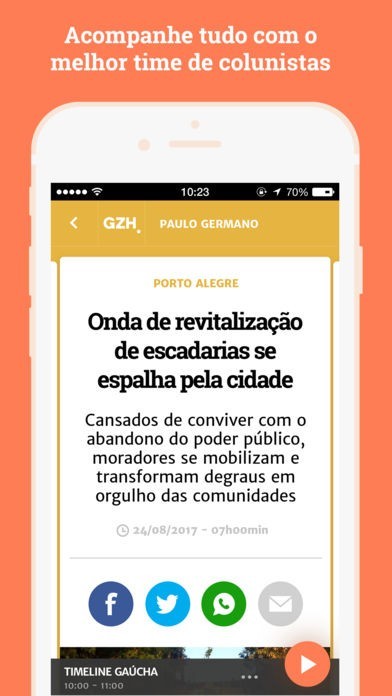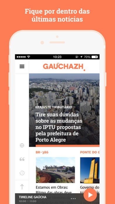 App Storeより引用Olá! A gente adora inovação e preparou um novo app com o melhor conteúdo de notícias, esportes e opinião do Rio Grande do Sul. Gaúcha e Zero Hora estão agora num mesmo lugar, unindo suas forças e os principais jornalistas do estado em uma única plataforma digital. Baixe o aplicativo e descubra mais conteúdo, mais opinião e informação em tempo real com o AO VIVO da rádio Gaúcha. Ative as notificações e esteja sempre bem informado.