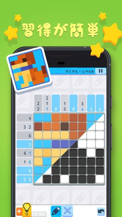 いつでもどこでも思考を研ぎ澄まして、簡単に学ぶことができます。お絵かきロジックパズル(別称、ピクロス、Griddler、ピクチャークロス)を習得するのは難しいですが、素晴らしいピクセルアートイラストを見つけよう!