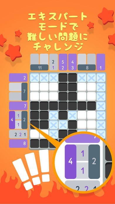 •グリッド上のブロックに色をつけて隠された絵を解いて遊べる、誰もが知っているシンプルで楽しいピクロスです!!