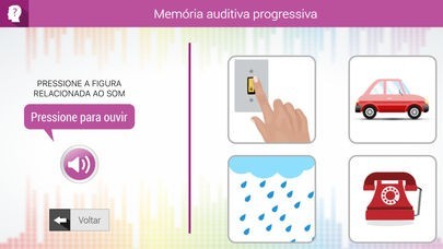 App Storeより引用App desenvolvido para trabalhar as habilidades auditivas, tais como: atenção, memória, análise-síntese silábica e reconhecimento dos padrões temporais do som.