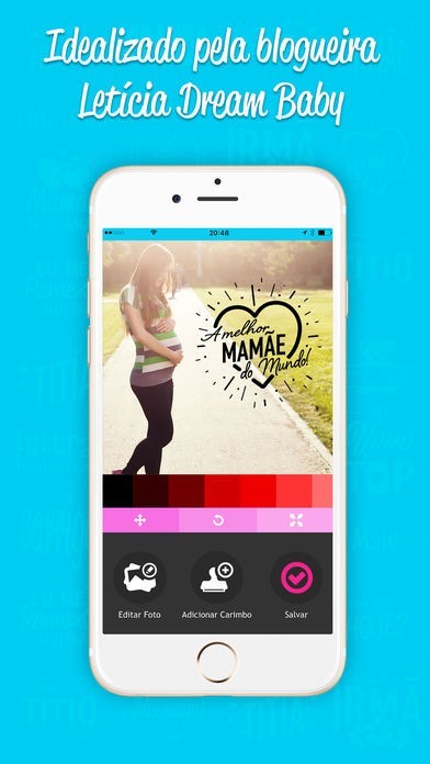 App Storeより引用Editor de imagens que oferece carimbos em Português com temas de maternidade feitos com todo carinho para mamães e gestantes.