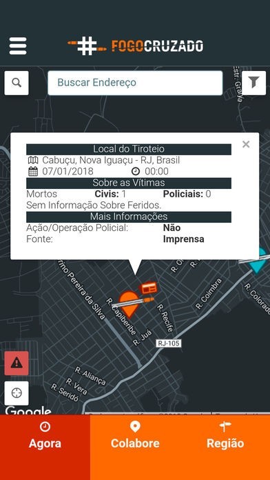 App Storeより引用O Fogo Cruzado é uma plataforma digital colaborativa que tem o objetivo de registrar a incidência de tiroteios e a prevalência de violência armada através de um aplicativo para tecnologia mobile combinado a um banco de dados.