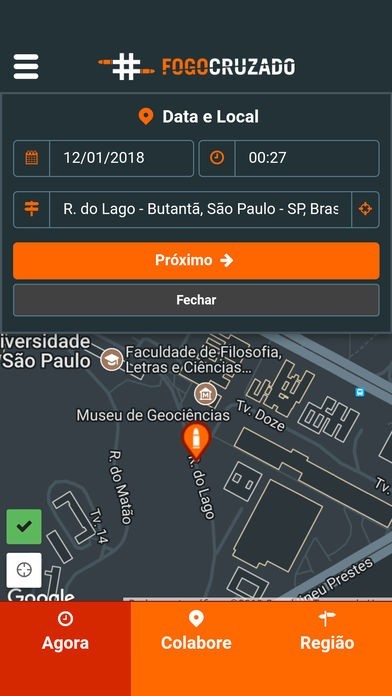 O app permite que qualquer cidadão compartilhe dados toda vez que presenciar ou ouvir um tiroteio. Ao preencher um formulário simples e seguro, a informação é transformada pelo app em uma notificação em um mapa.