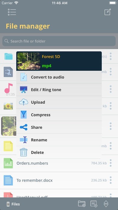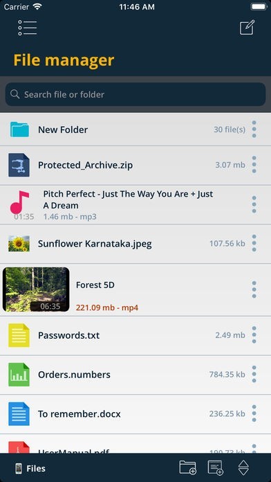 BrowserPro contains amazing file manager which lets you store, view and manage documents on your iPhone, iPad and iPod.