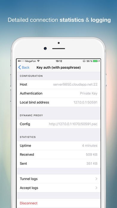 - Login password or private key passphrase are stored in your device memory only