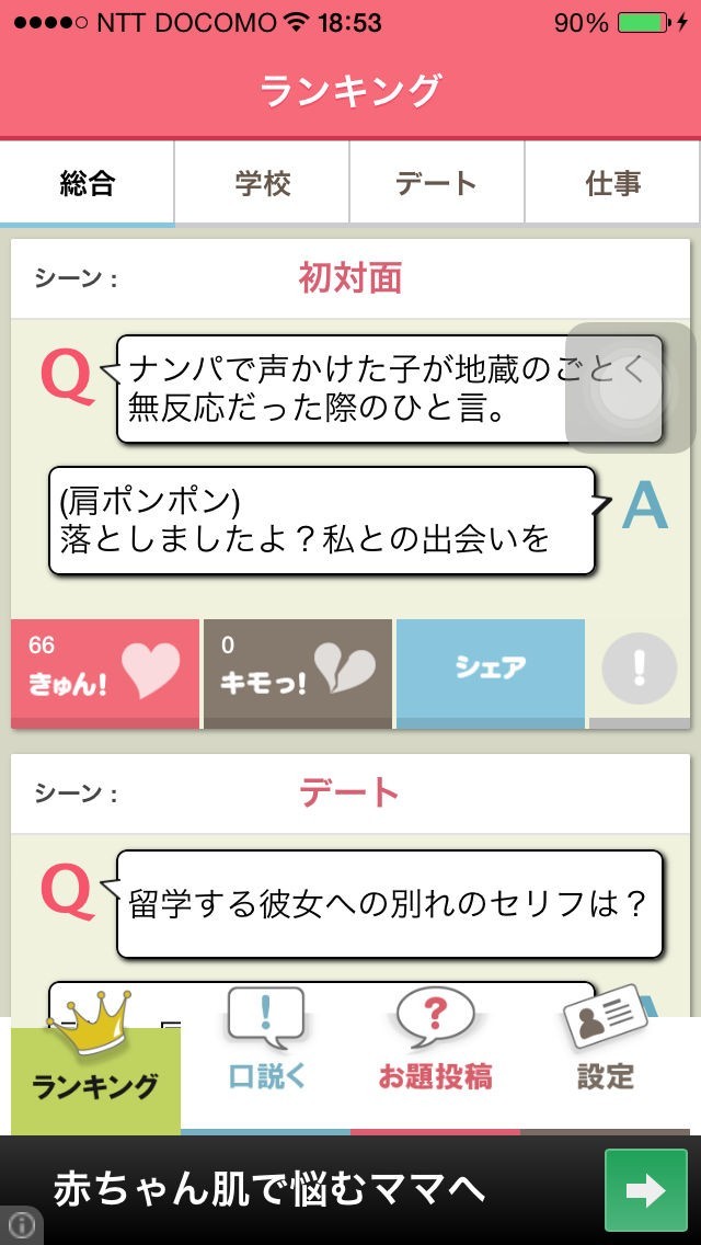 学んだら、みんなの口説きを”キュン”と”キモっ”で評価しよう!