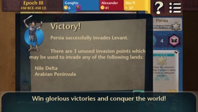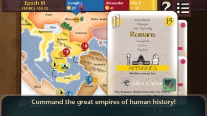 キャラクターの主なリーダーの決意を操作して世界を征服します。ターン制ストラテジーで、ユーザーの帝国を勝利に導きます。シーザーやナポレオンなどのキャラクターを使って、六つの素晴らしい時代で敵を支配します。
