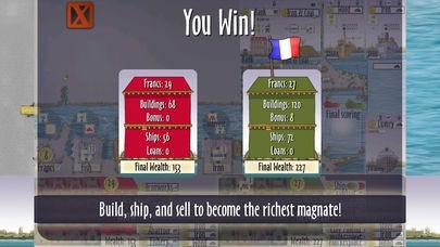 Collect resources to build and use new buildings, while paying your workers and saving up for ships. Buildings are a good investment, but ships provide necessary income. Deciding where to put your resources early on may determine your fate later in the game, so choose wisely!