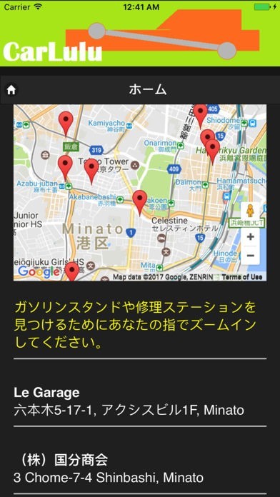 App Storeより引用近くのガソリンスタンドを示す地図、洗車、車の修理