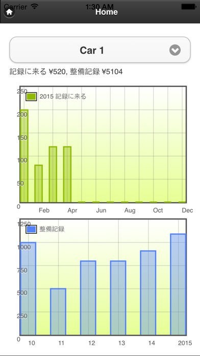 1年間で受けたカーサービス料金をご覧になれます