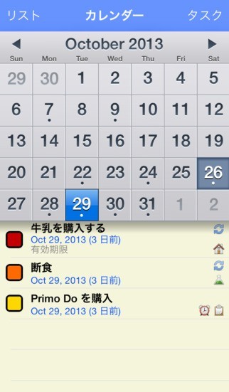 * 月々のカレンダーの日付の下にタスク設定を表示