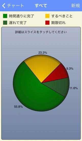 * 独自のパイチャートがタスクの進度を表示するためにモチベ―ションの向上につながります