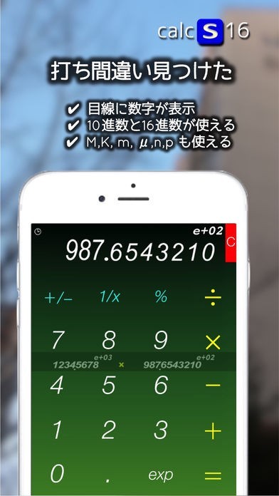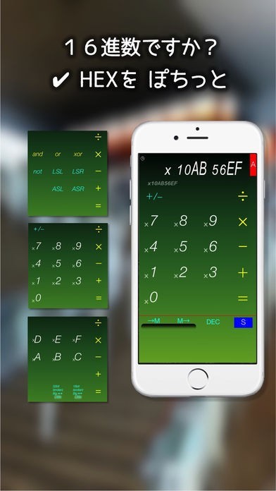 -.16進数計算できます。(10進数/16進数混合計算が可能)