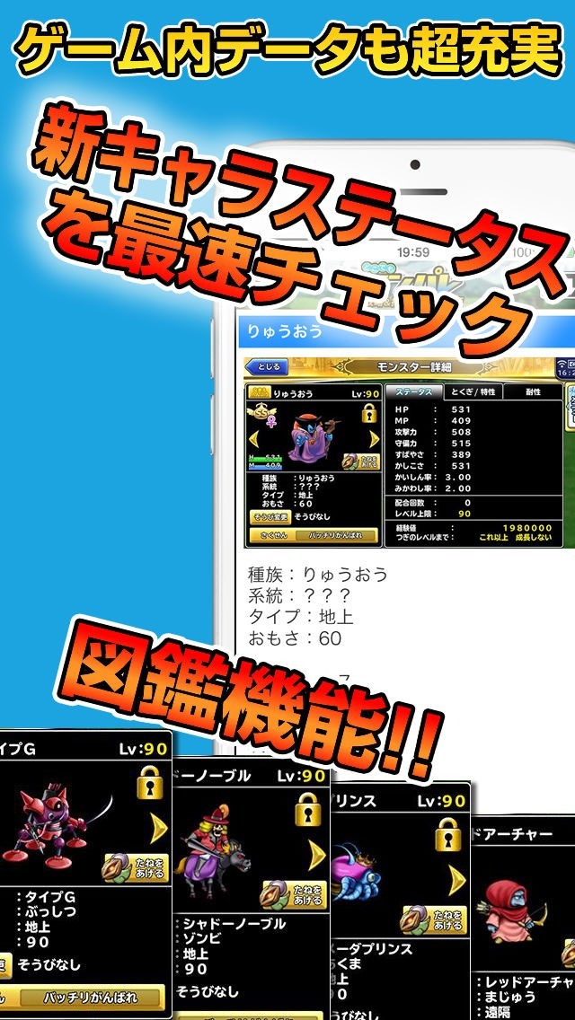 App Storeより引用人気アプリゲーム“ドラゴンクエスト どこでもモンスターパレード(DQMP)”の攻略アプリです。
