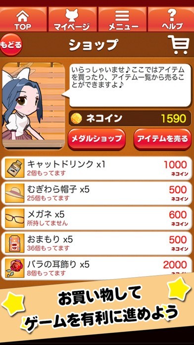猫が街をパトロールするアクションゲーム!メダルを集めてアイテムをゲット!