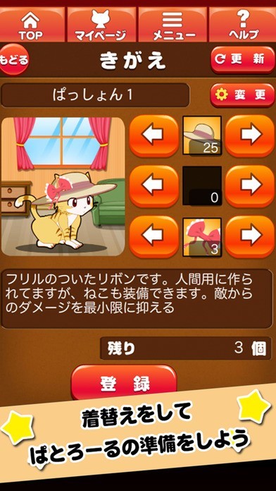 「ねこぱとろーる」は3匹の猫を主人公にした横スクロールアクションゲームとして、お気に入りの猫と「ぱとろーる」を楽しむことができます。ジャンプとスライドの2つのボタンを使い分けることがハイスコアへの近道となっており、ステージに登場するメダルや宝石を獲得すればコインへの交換が可能。メダルや宝石を見つけたら逃さずゲットしておけば、着せ替えやアイテムの購入に役立ちます。他ユーザーの元へと猫を「おさんぽ」に派遣できるのも、このゲームならではの特徴です。通勤通学の隙間時間には「ぱとろーる」でステージを攻略し、授業中や仕事中は「おさんぽ」に出して他ユーザーと交流するといった遊び方も楽しめるようになっています。