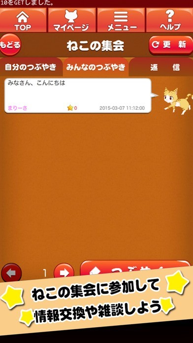 「ねこの集会」で他のユーザーとコミュニケーションが取れる