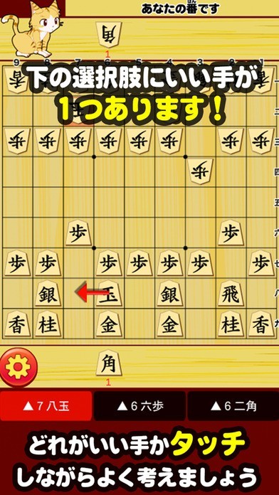 先手・後手は自動的に決定されます。ヒントが3つ表示されますが、そのうちの1つが正解手となっています。 どれが正しい手なのか考えながら指していきましょう。ヒントをタッチするとどの駒をどこへ動かすかが表示されます。