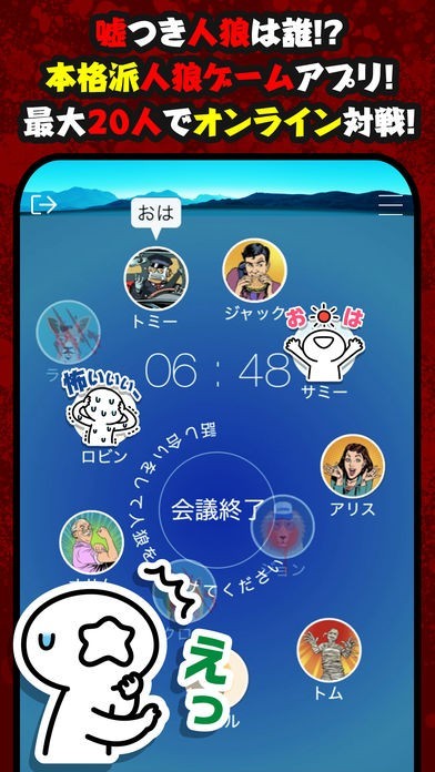 20人のプレイヤーと人狼ゲームに参加する事が可能で、スタンプを使えるのが楽しい