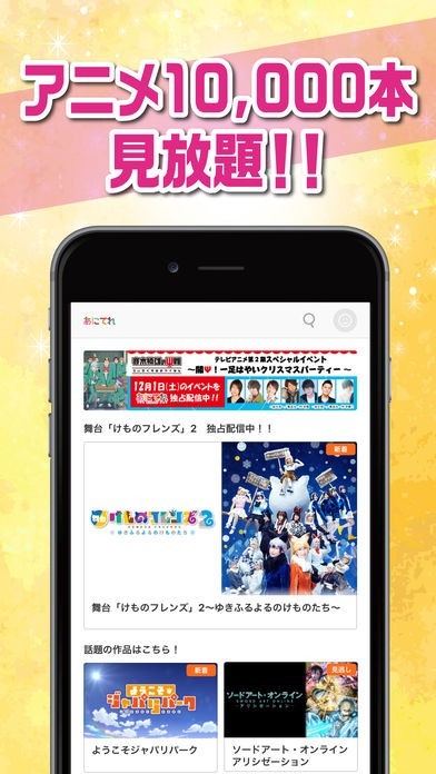 テレビ東京制作の10000本ものアニメや、舞台・ライブも楽しめ、コンテンツをダウンロードできる点も便利です。