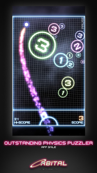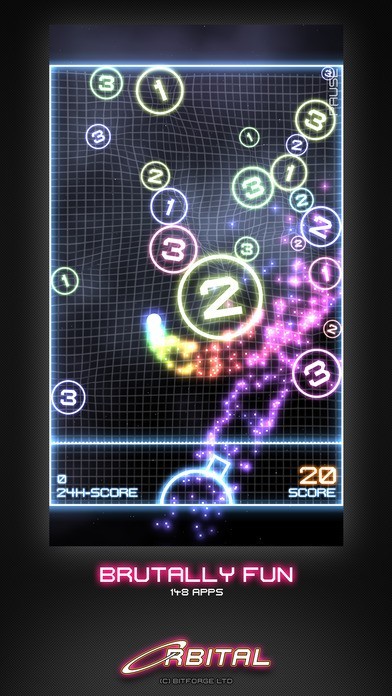 Orbital (オルビタール)について:Orbitalは一つの指だけでできる簡単な的当てゲーム:数字が書いてある球を壊すと点が入り誰でも遊ぶことができるパズル。短いゲームもできて、夢中になってしまい止められない。