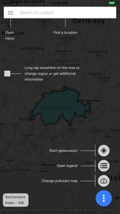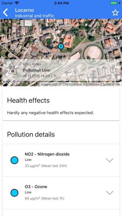 • Informs about the current air quality at your location or in any other arbitrary site in Switzerland and Lichtenstein.