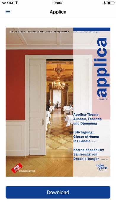 App Storeより引用Die offizielle App der Fach- und Verbandszeitschrift Applica – SMGV Schweizerischer Maler- und Gipserunternehmer-Verband