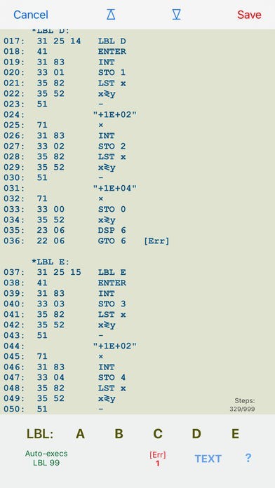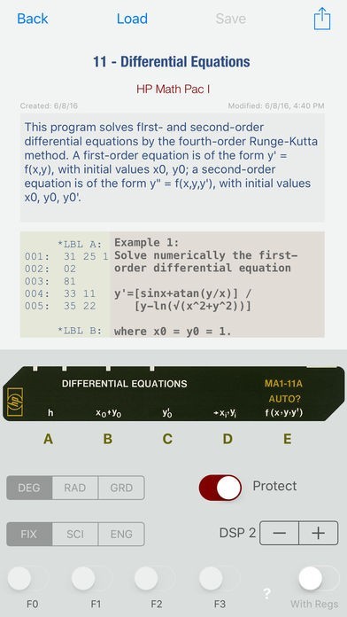 実際のHP-67よりもあらゆる点で自由が効くアプリです。プログラムステップは999ステップまで可能ですし、100個の追加レジスタに100個の組み込み定数も存在しています。実機では実現できない規模のプログラムを組むことができる形です。