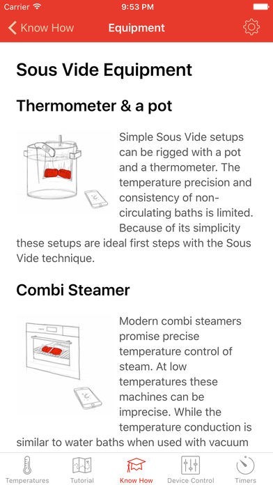 プロ慣習のチュートリアルやタイマー付きの真空調理のレシピメニューが満載!